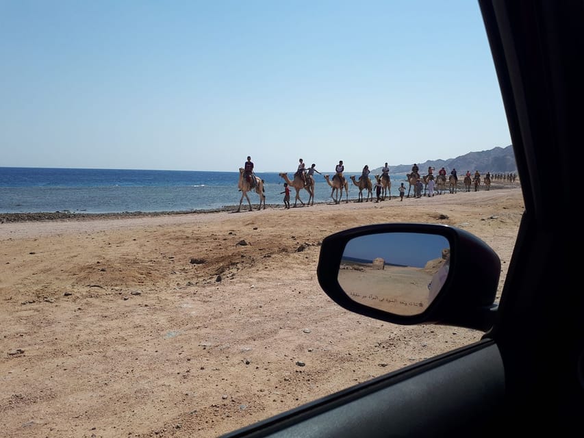 • تبدأ الرحلة صباحًا من الفندق بسيارة مكيفة إلى دهب.